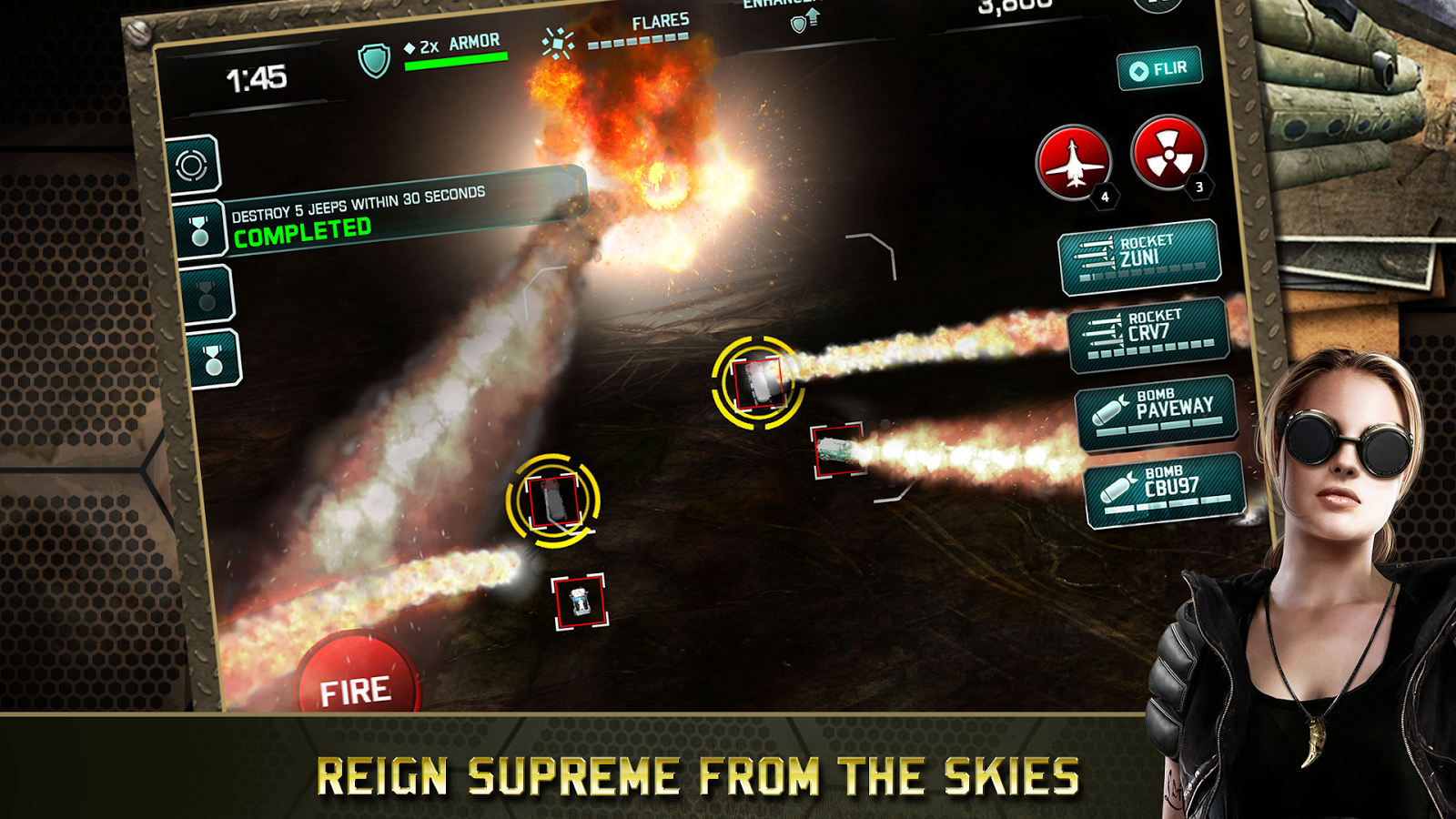 Atur di jantung perang udara rahasia, dengan dunia nyata terinspirasi lingkungan immersive dan FLIR (Forward mencari Infrared) kamera asli, permainan menempatkan Anda di kursi panas dari operator ops khusus. Anda harus bekerja dengan cara anda rantai komando atas serangkaian misi rahasia, menggunakan peralatan ultra high tech, strategi & keterampilan dan daya tembak yang unggul untuk meletakkan sampah ke musuh-musuh negara, semua pada ketukan jari Anda!